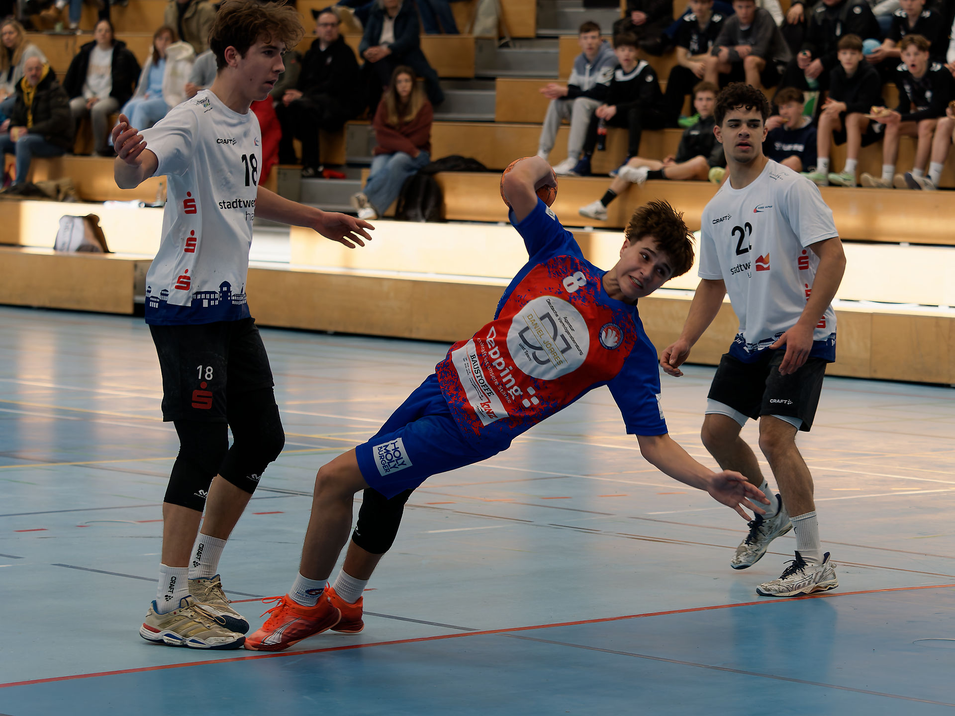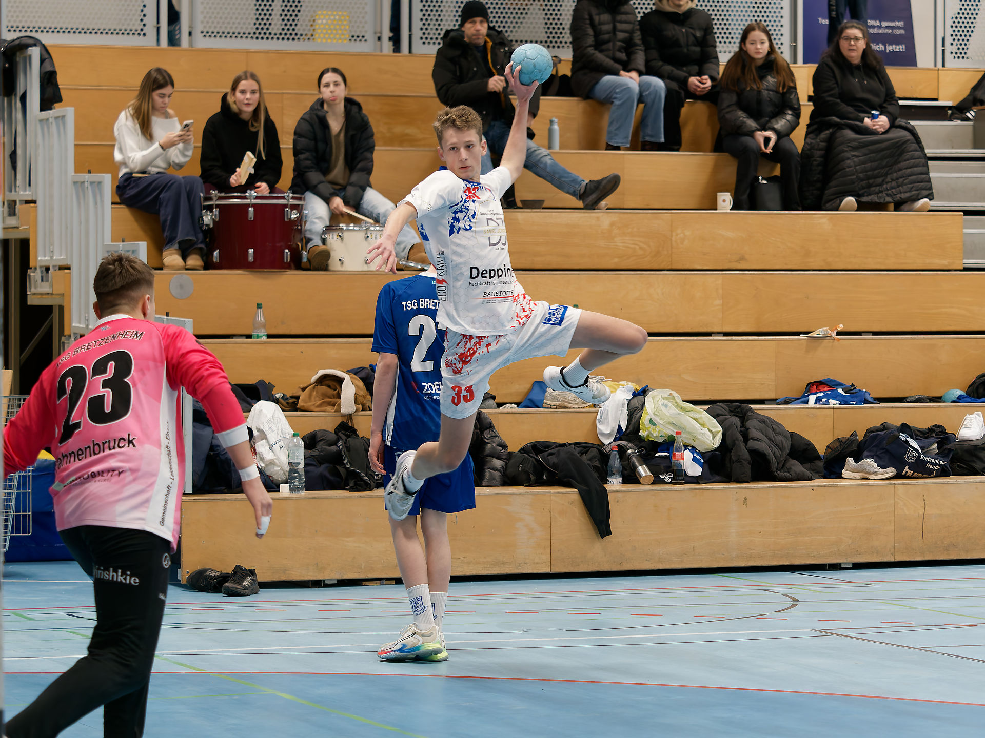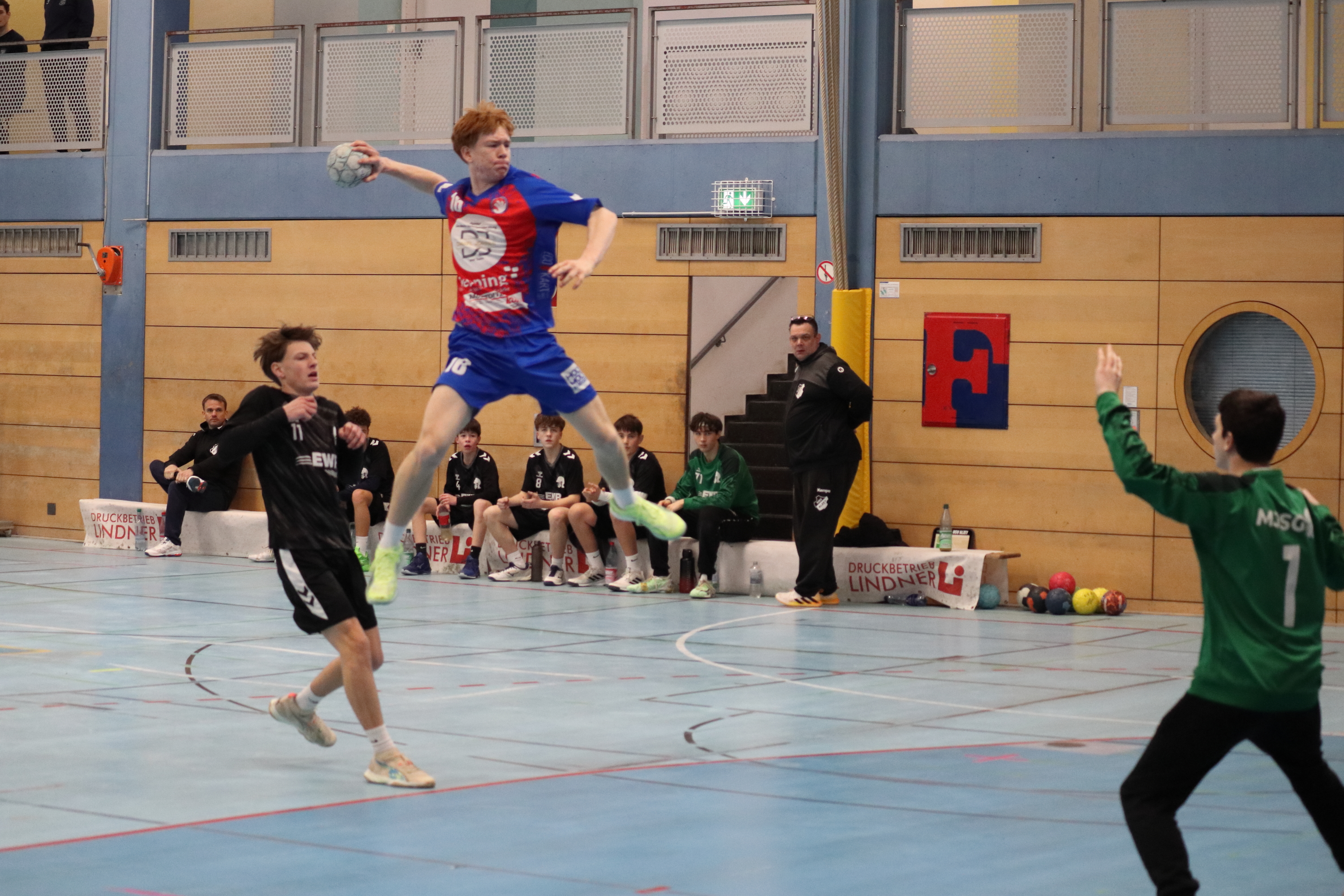 Die Vorbereitung auf das Turnier verlief alles andere als gewöhnlich. Aufgrund der kurzen Zeit zwischen Jahreswechsel und Turnierstart standen nur wenige gemeinsame Trainingseinheiten zur Verfügung. Zusätzlich musste die mB1 einige personelle Engpässe verkraften, was die Planung und Aufstellung erschwerte. Florian Kummer, der größtenteils auch geschont wurde, Leander Göbel und Anton Stählin waren zusammen mit unseren starken Torhütern Matteo Kesting, Felix Albin und Jakob Landwehr die Grundpfeiler für unser Spiel. Maximilian Schefter konnte auf der Rückraum Mitte überzeugen, Lukas Wagner zeigte sich am Kreis stark formverbessert. Wir konnten unterschiedliche Abwehrvarianten im Wettkampf testen und haben auch das Ein oder Andere zum Verbessern gesehen. Trotzdem bewahrten Mannschaft und Trainerteam Ruhe und setzten auf eine kompakte, zielgerichtete Vorbereitung, um das Team bestmöglich einzustellen. Ohne Mika, Jarne und Lukas Zimpel und mit den angeschlagenen Joni, Ginger und Lundi haben wir eine ganz vernünftige Leistung auf die Platte gebracht, Spieler, Fans und Trainer konnten zufrieden sein.